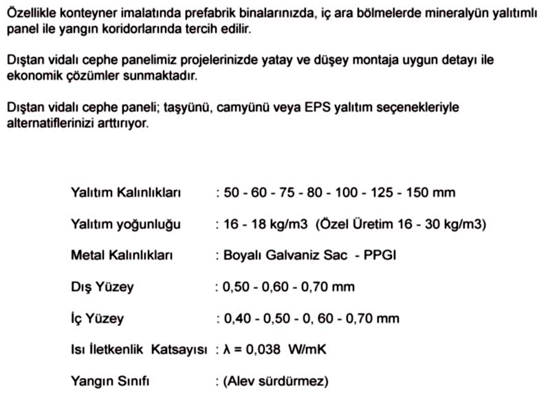 EPS YALITIMLI DIŞTAN VİDALI SANDVİÇ CEPHE PANELİ