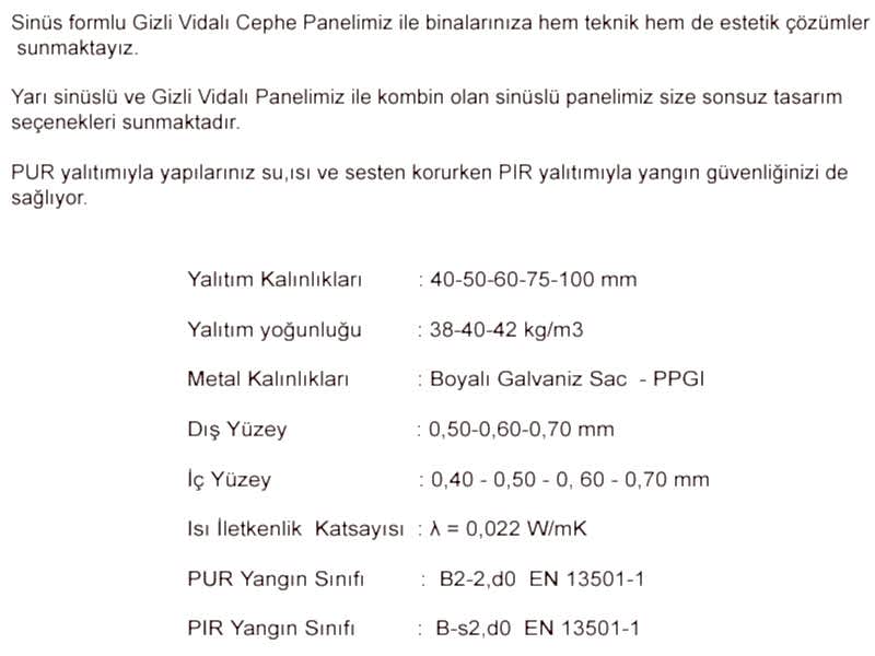 PUR-PIR YALITIMLI YARI SİNÜS SANDVİÇ CEPHE PANELİ