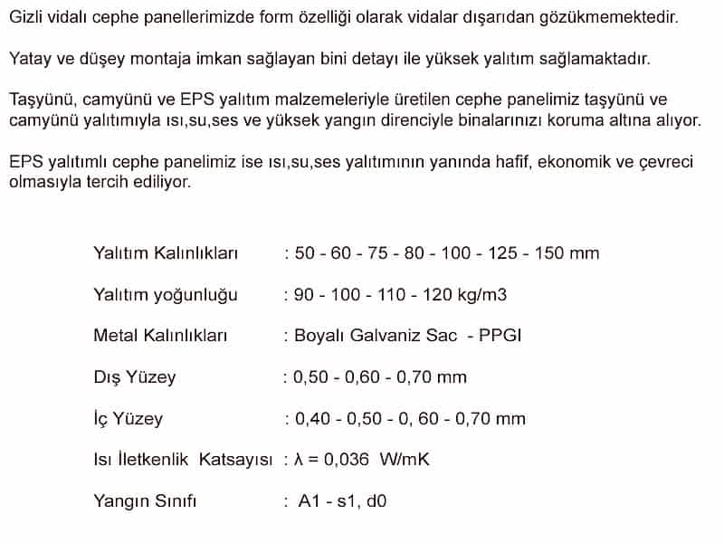 TAŞYÜNÜ & CAMYÜNÜ YALITIMLI GİZLİ VİDALI SANDVİÇ CEPHE PANELİ